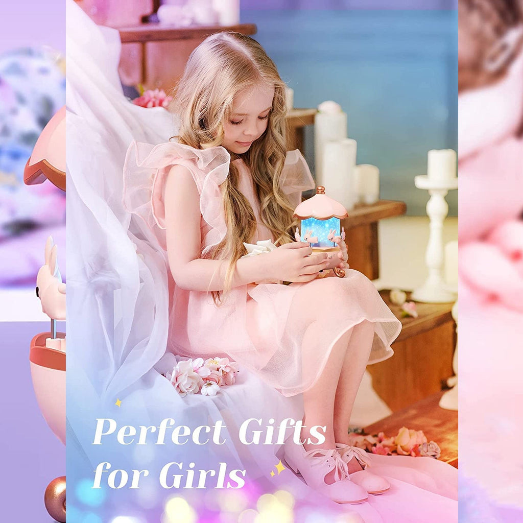 Adorable bunny-themed carousel with LED projection