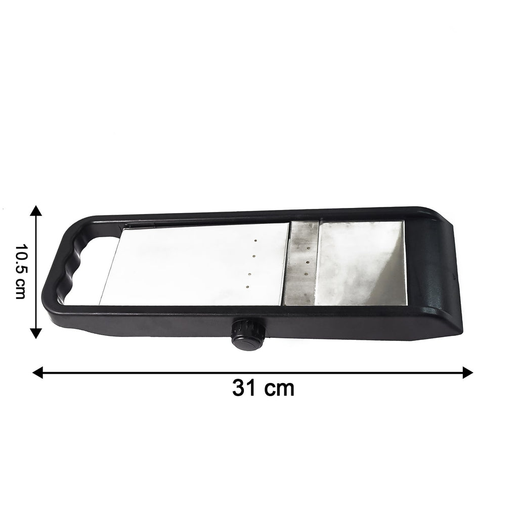 The adjustable slicer gives the perfect slicing experience with utmost persistence. It cuts potatoes, onions, carrots, radish, cabbages, cucumber etc. The tempered stainless steel material adds strength and life to the cutting edge. The slicer can be continually used for long time without creating a pain for you.